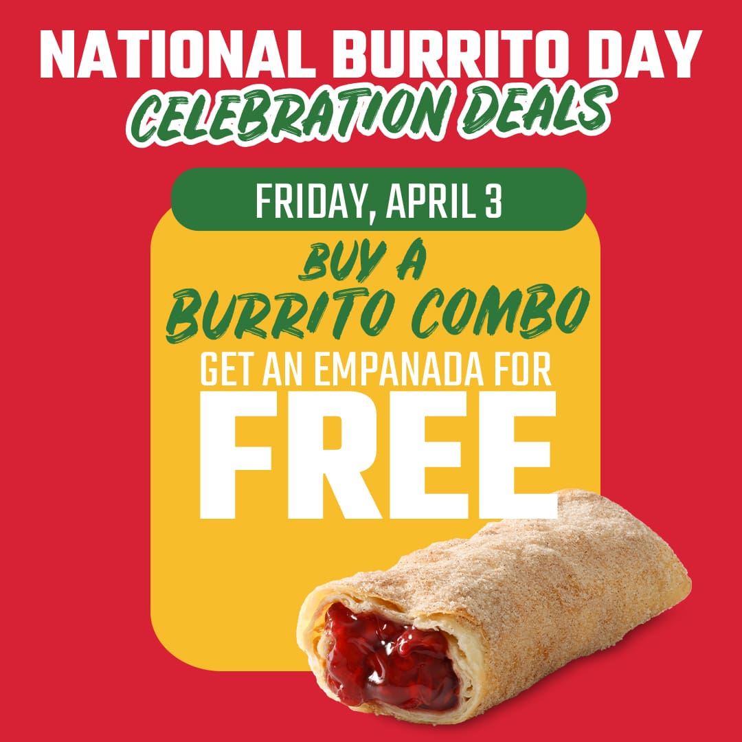 🗓️Fri, April 3: Buy a Burrito Combo and Get a Free Cherry Empanada 🌯