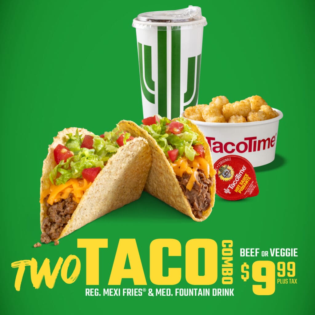 One day only. Order in-store, online or on the TacoTime app. Pick up and delivery available.